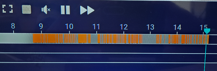 The coloured bar on the bottom will show if there is video recorded on that date, with orange sections where events were recorded. Use this to browse your recordings and locate the time period you are interested in.