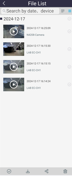 - You can tap the date to change the day being viewed - days with video will have red dots.