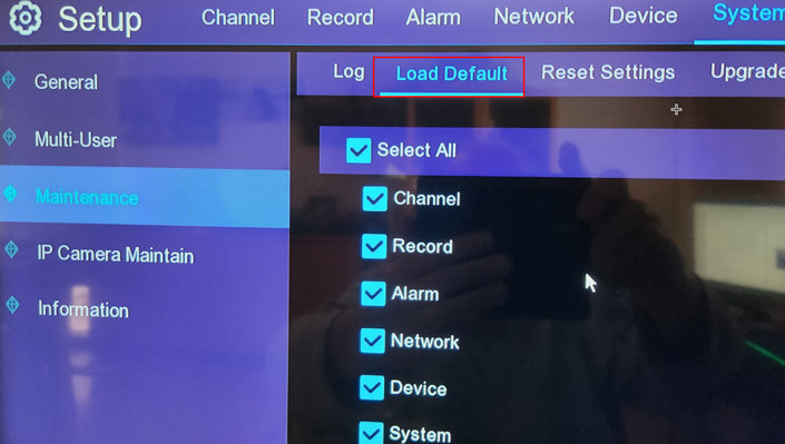 Choose Load default. Tick the top box to select all boxes, and press Apply on bottom right.