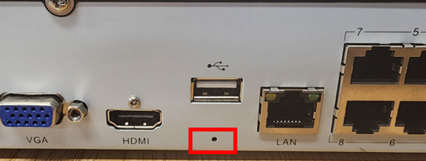 They look like the ones below- if your unit has this pinhole, press a toothpick or opened paperclip into the hole to depress the button, and hold it for at least five seconds. The screen will change and offer to set a new password. For units with a -V3 model number, you will need to hold the button in for about 15 seconds, and it will factory-reset the unit (it will not wipe recorded video though).
